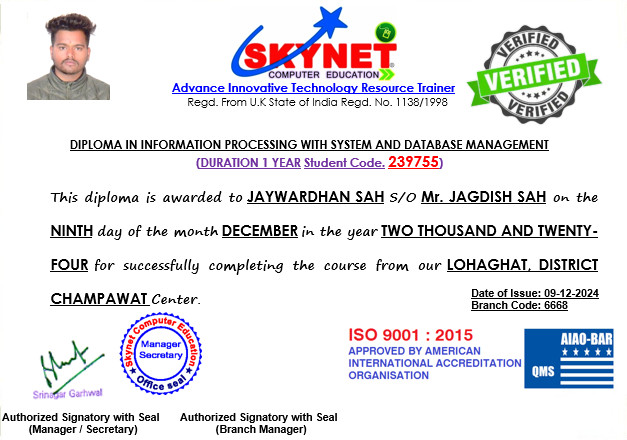 HomeVerify Your Skynet CertificateStudent Code 239755 Posted in Verify Your Skynet Certificate Estimated read time 0 min readStudent Code 239755 on November 19, 2025November 19, 2025 समय हस्ताक्षरShare this… Facebook Whatsapp Email